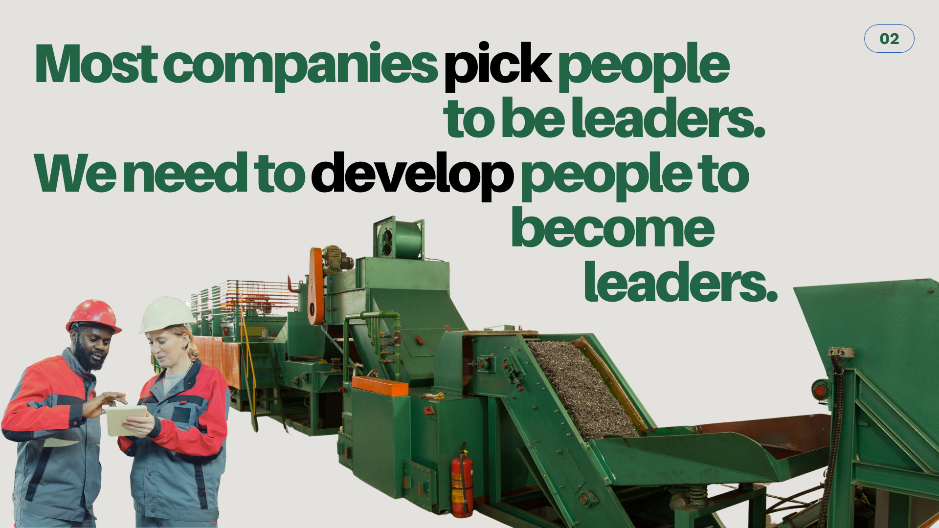 Workshop series that builds stronger leaders. Foundation training on leadership transitions, culture development, and effective supervision designed specifically for manufacturing teams and environments.